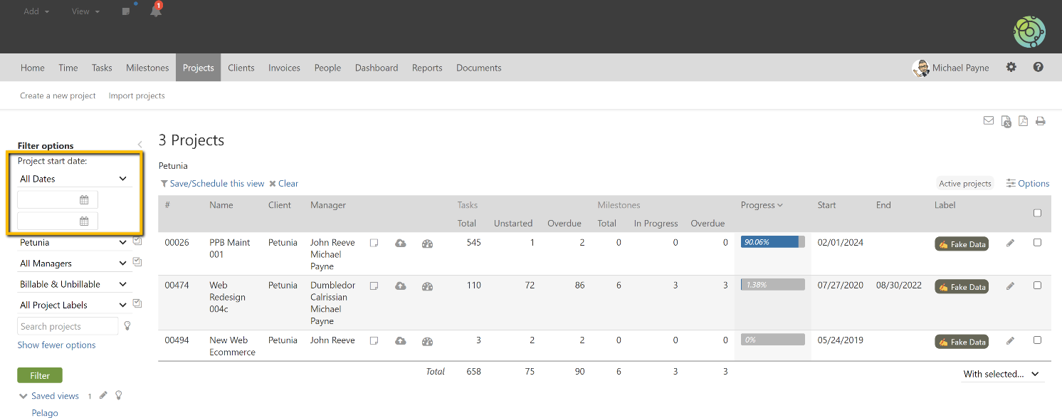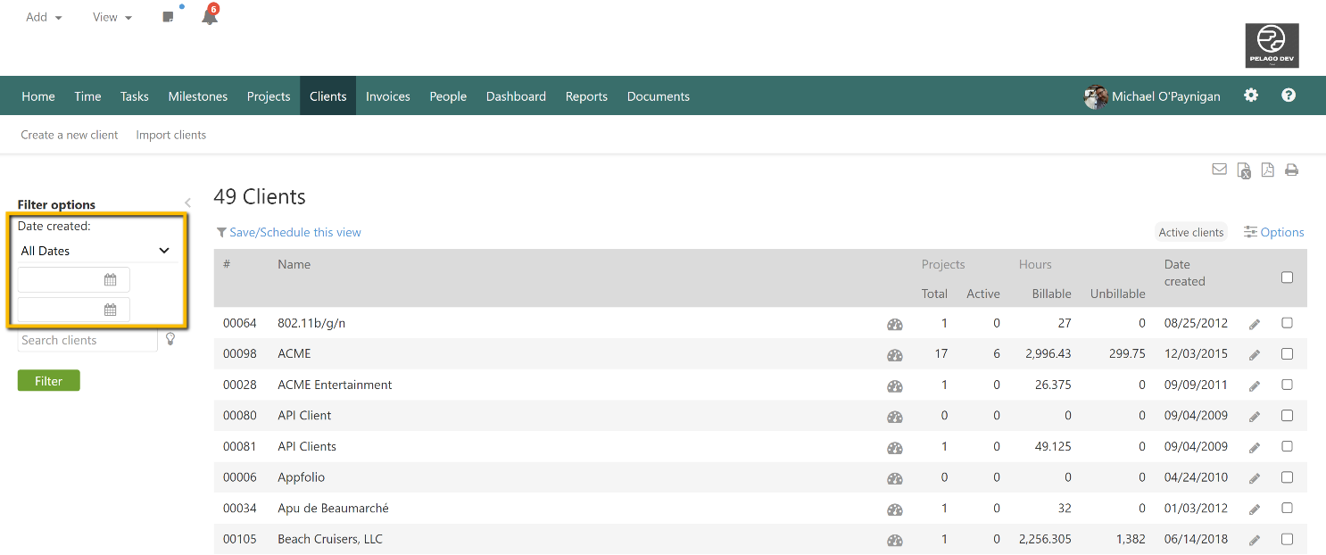 Previously this was not possible, but the feedback was converted into a feature request and became part of the development roadmap. It is now possible to run a filter on the client listing by the date the client was created and the project listing can be filtered by when the project was started.