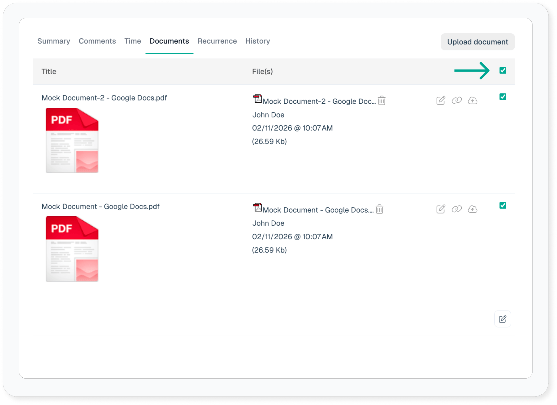 Additionally, there is an option to bulk delete documents on a task. If a task gets polluted with a lot of unneeded documents, they can be deleted in bulk to clean up the task. To bulk delete documents click on the document tab, select the documents, then use the “With selected” functionality to bulk delete them.