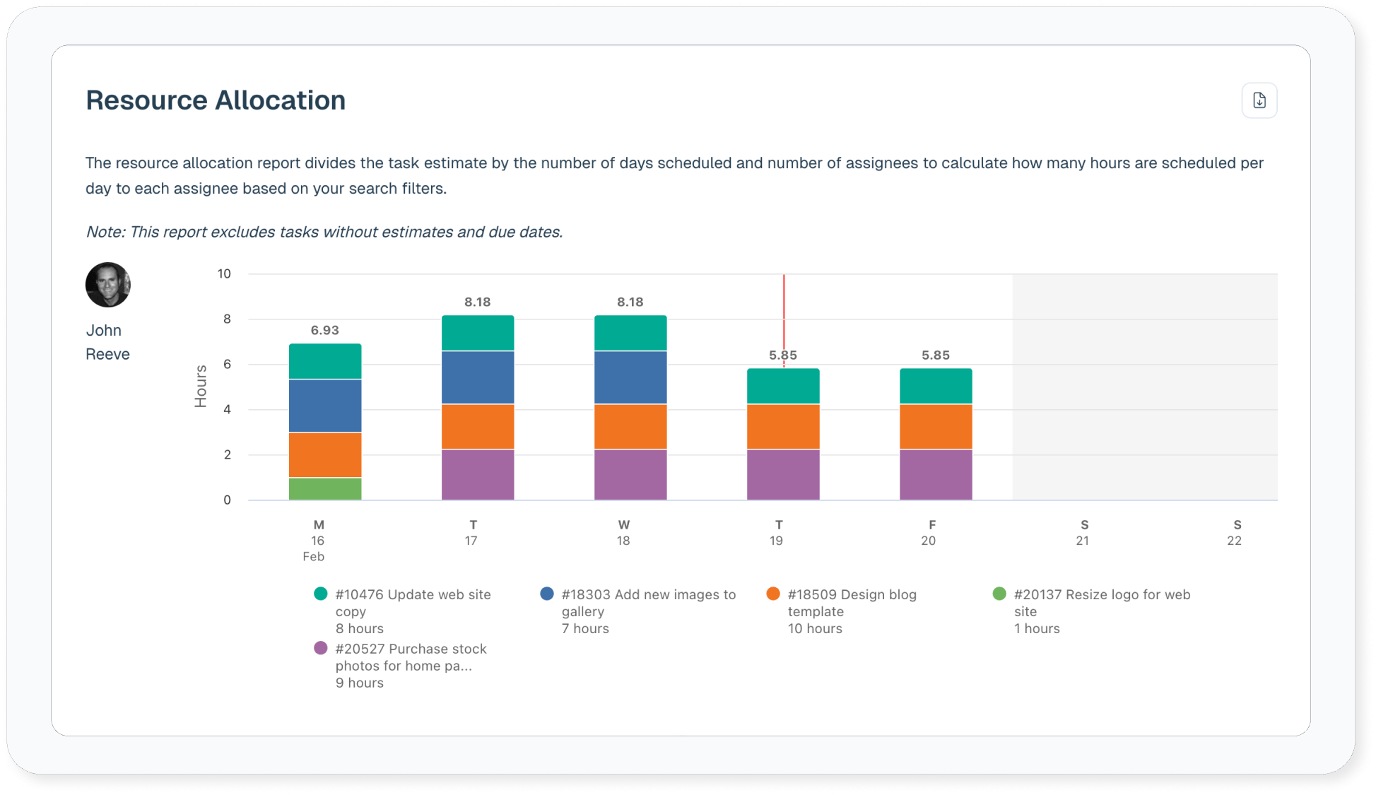 If you need to predict workload, use the Resource Allocation report. This report uses task estimates to calculate workload for one or more resources.