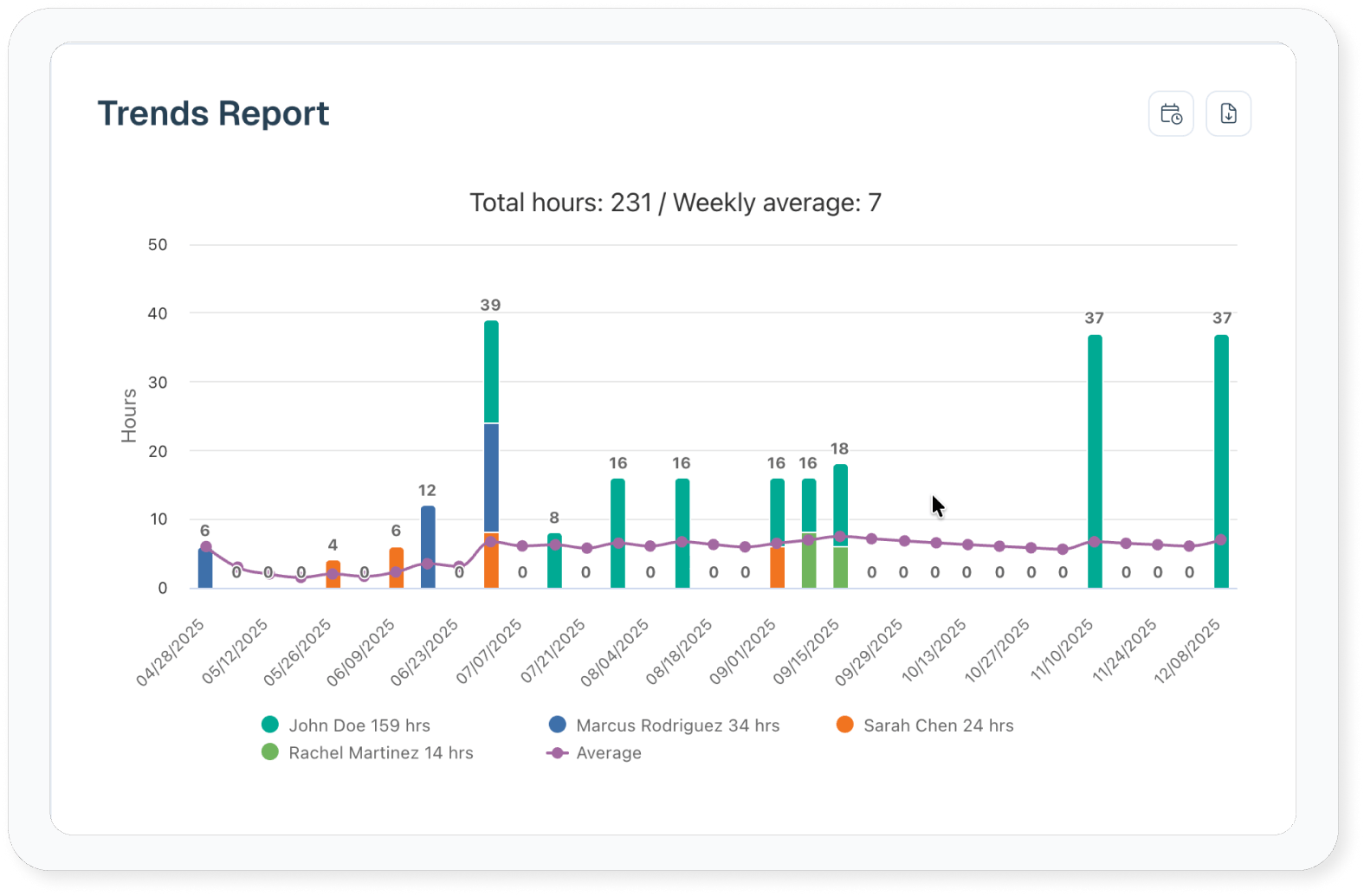 Or, you can run a Trends Report to see if you are billing enough hours each week.