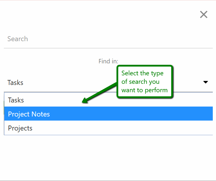 On the mobile app, you are able to search for Tasks, Projects & Project Notes.