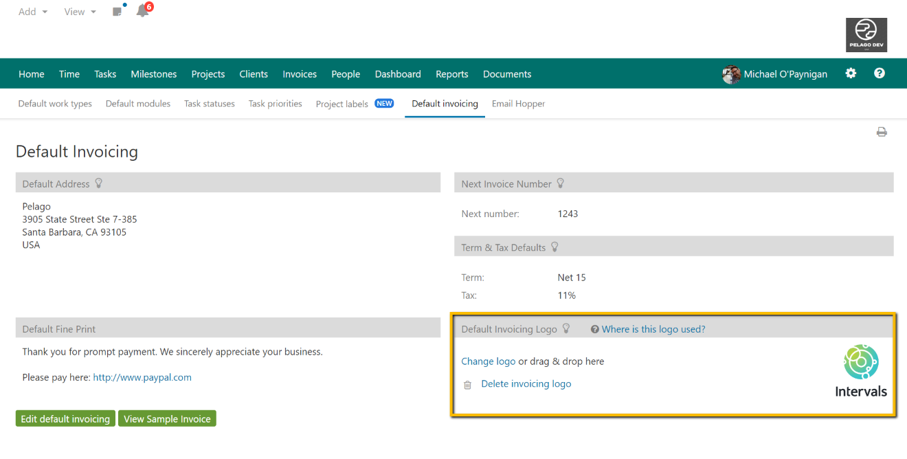 We support the ability to have an invoicing specific logo in addition to your account logo. The invoicing specific logo can be managed in the default invoicing section (⚙️ >> Settings & Defaults >> Default Invoicing).