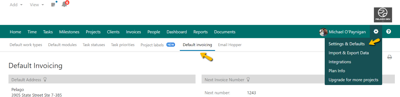 Default Invoicing Navigation