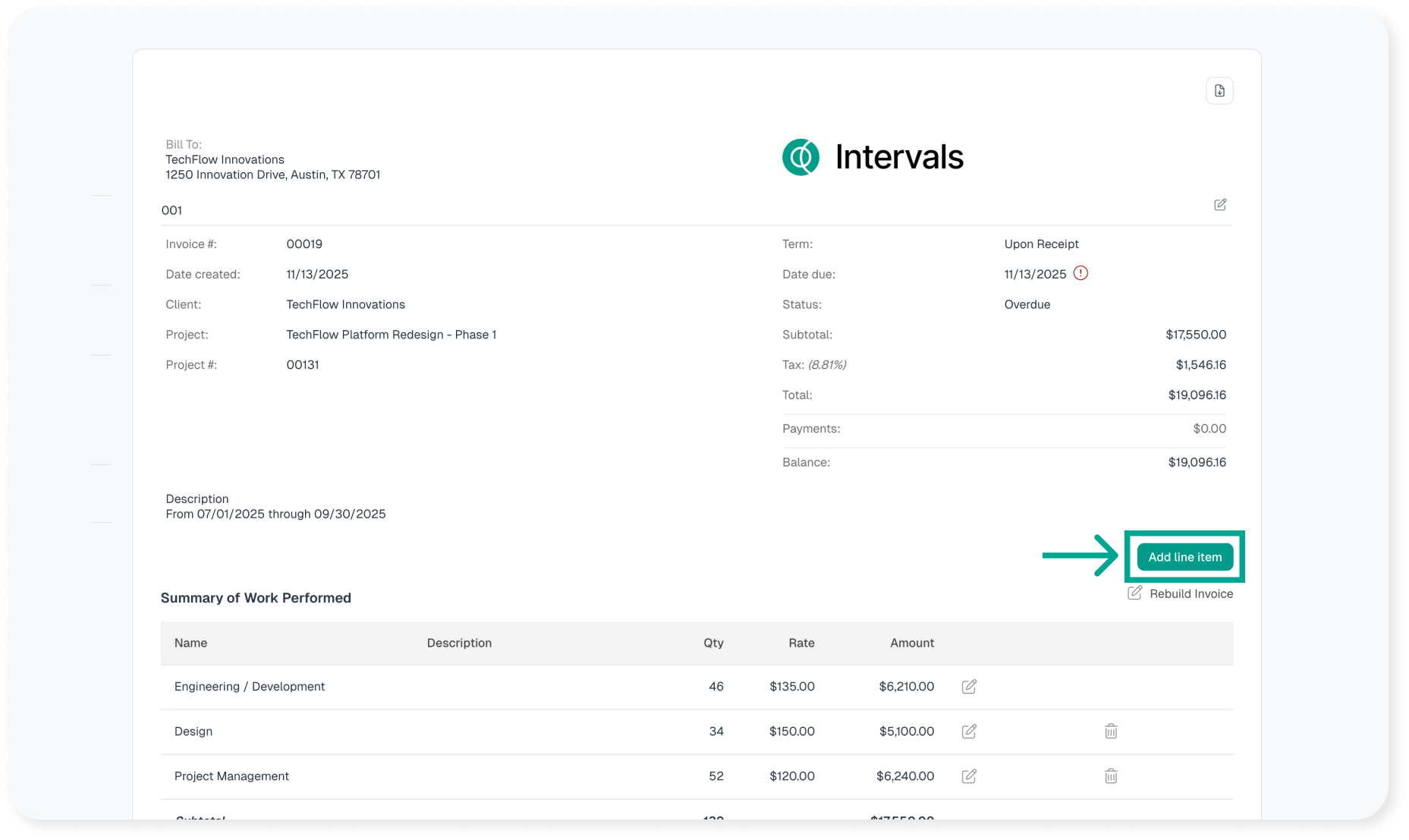 Invoices based on actual work performed