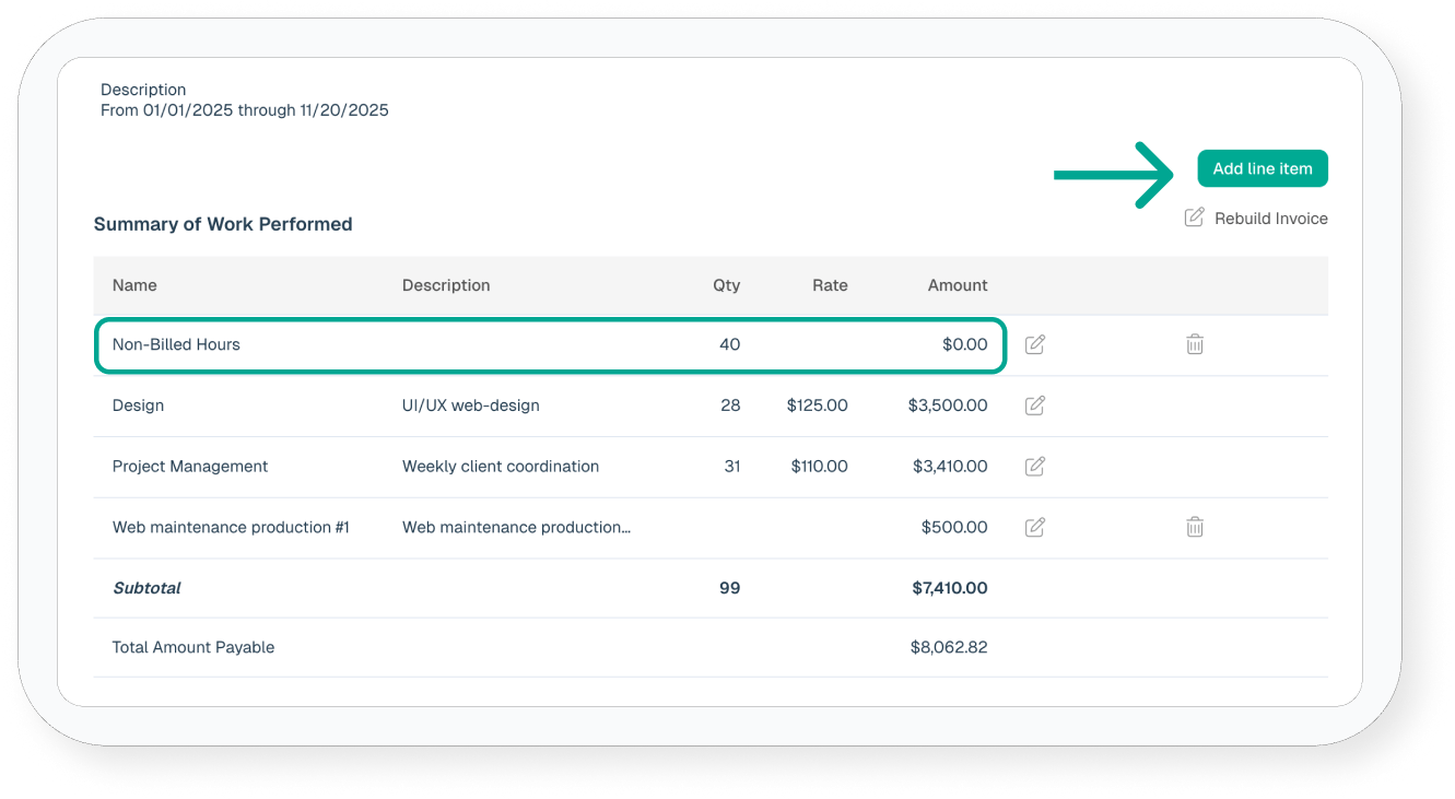 Add a line item for unbillable time