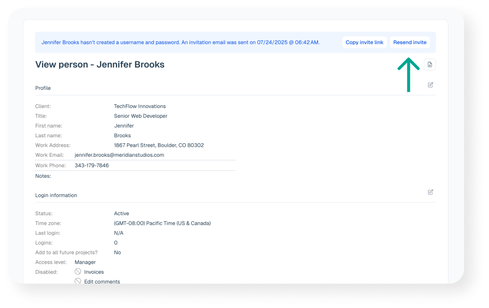 By design passwords are private to each person but there are two options on this front. Administrator level users can look up the person in the people section and then click on the link at the top of the person’s profile to trigger an email to set their log in information.