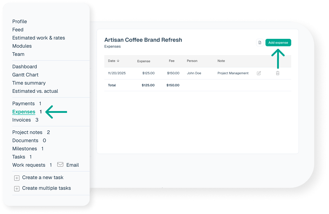 - Navigate into a project and click on the Expenses link in the left column.