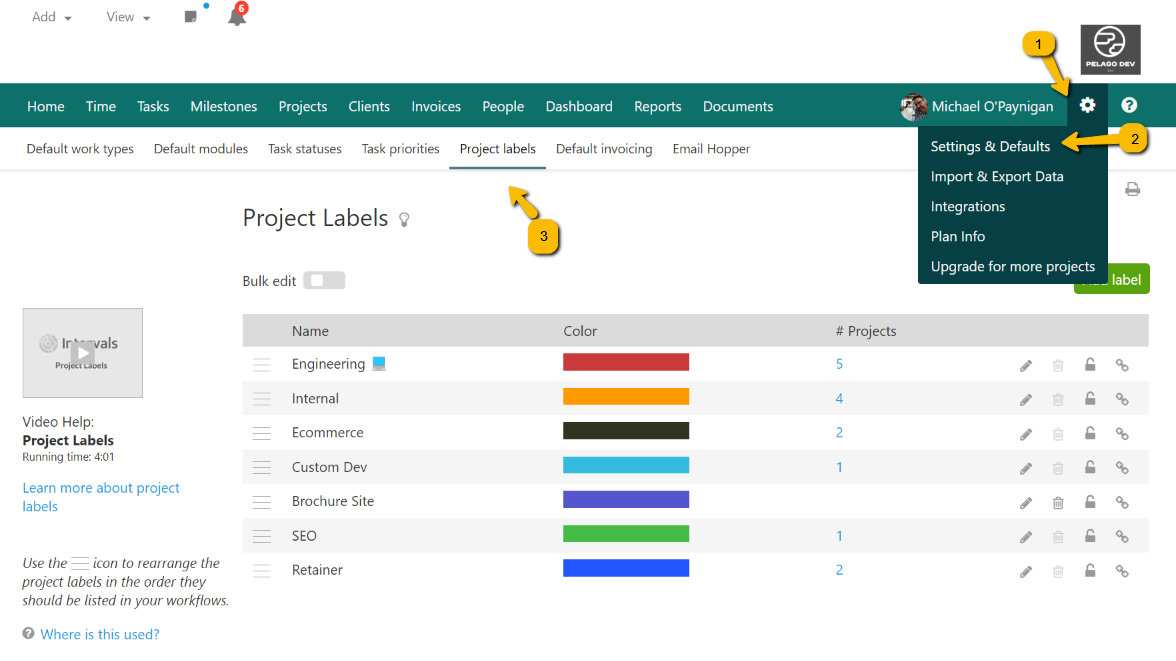 Project Labels can be managed by any administrator user that has been granted access to the Settings & Defaults section. Hare are the steps.