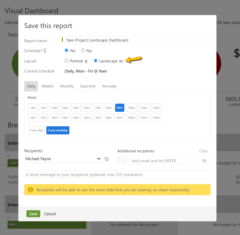 I have a weekly dashboard that I email to myself and it really needs to be landscape instead of portrait. There is a lot of data in the report and controlling the layout would be helpful. Can this be added?