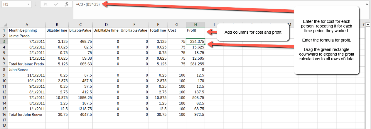 That’s it. Now you have a detailed analysis of how much profit each person generated.