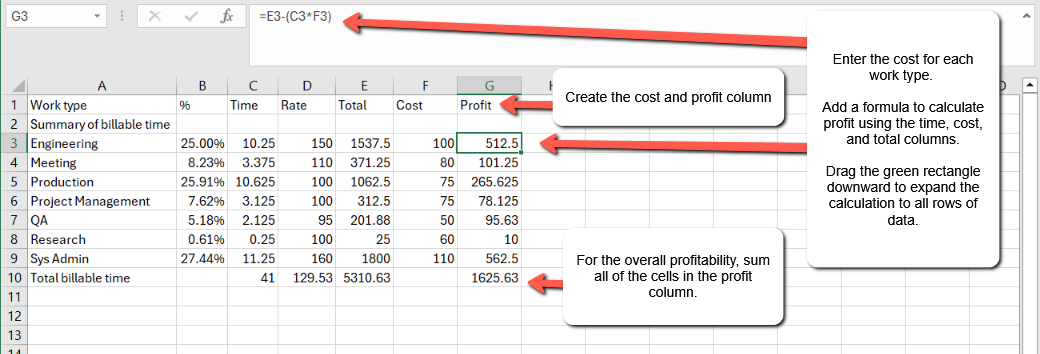 That’s it. Now you have a detailed analysis of how much profit each work type generated.