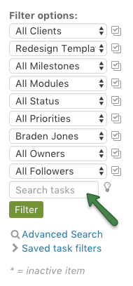 Searching for tasks can be done on the spot by using the ‘search tasks’ input field.