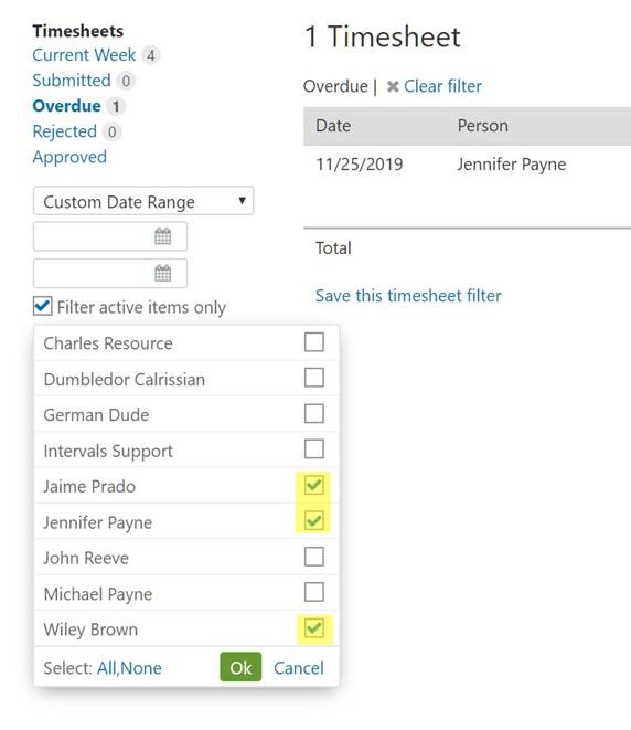 2. Select the desired timesheet status (overdue, submitted, etc.)